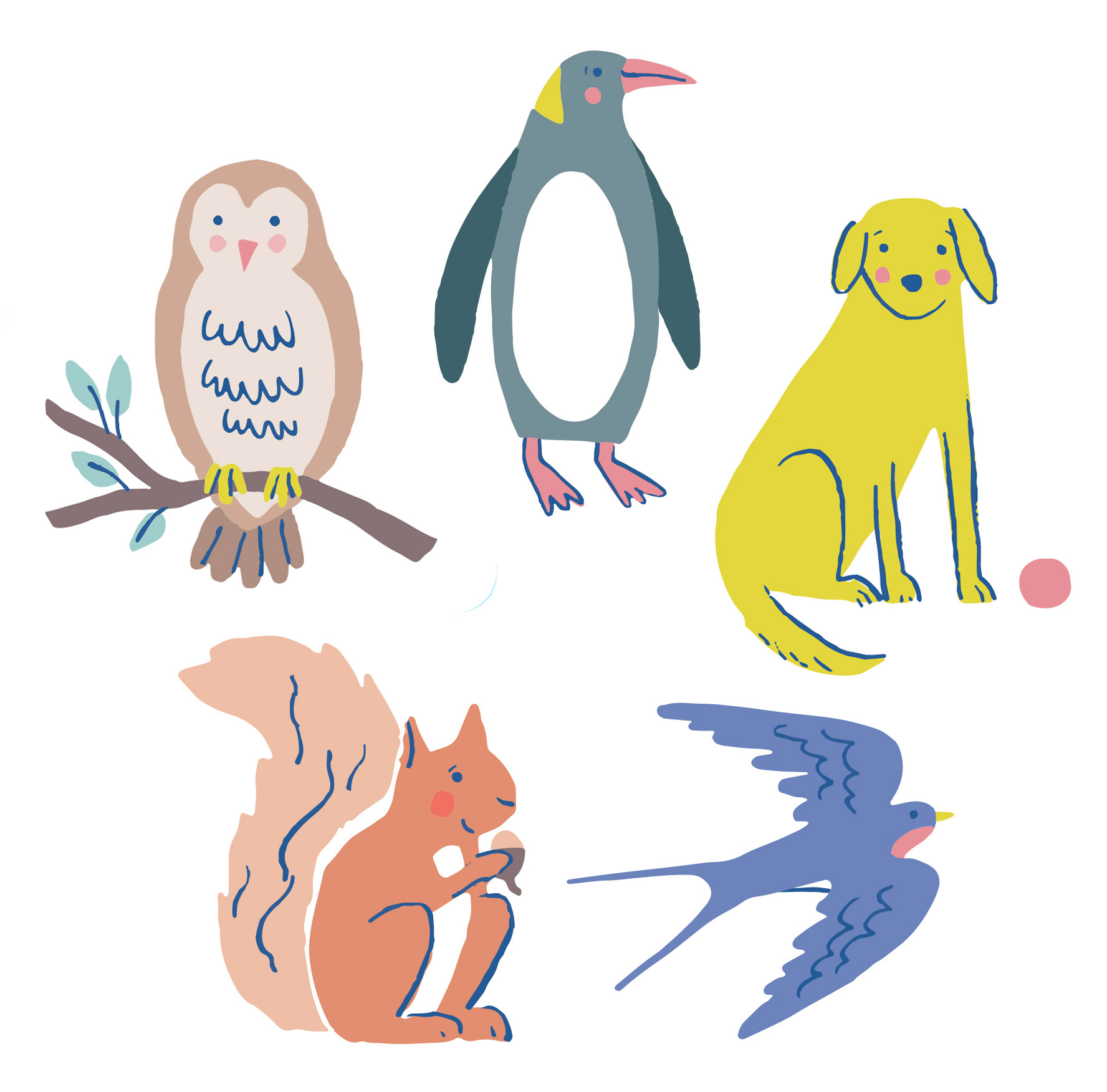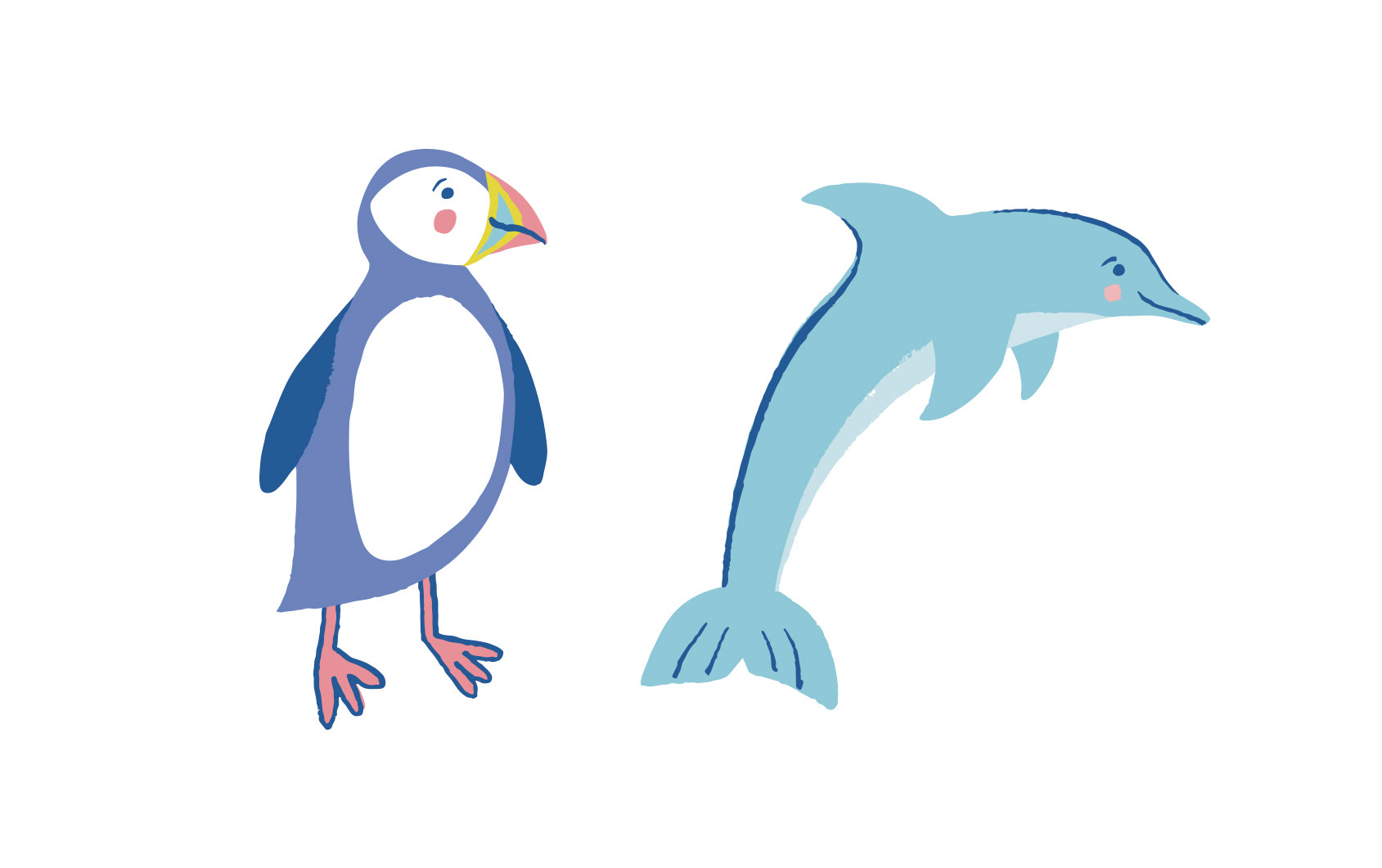 Reflective. Also, two more character illustrations of Puffin and Dolphin - class names of the two Reception classes at Churchers College.