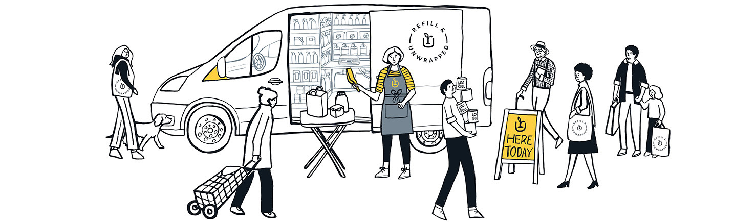 Refill and Unwrapped are a mobile refill shop supplying high quality, environmentally friendly household cleaning products, toiletries and sustainable cleaning goods. Working on core brand elements to tell her story.