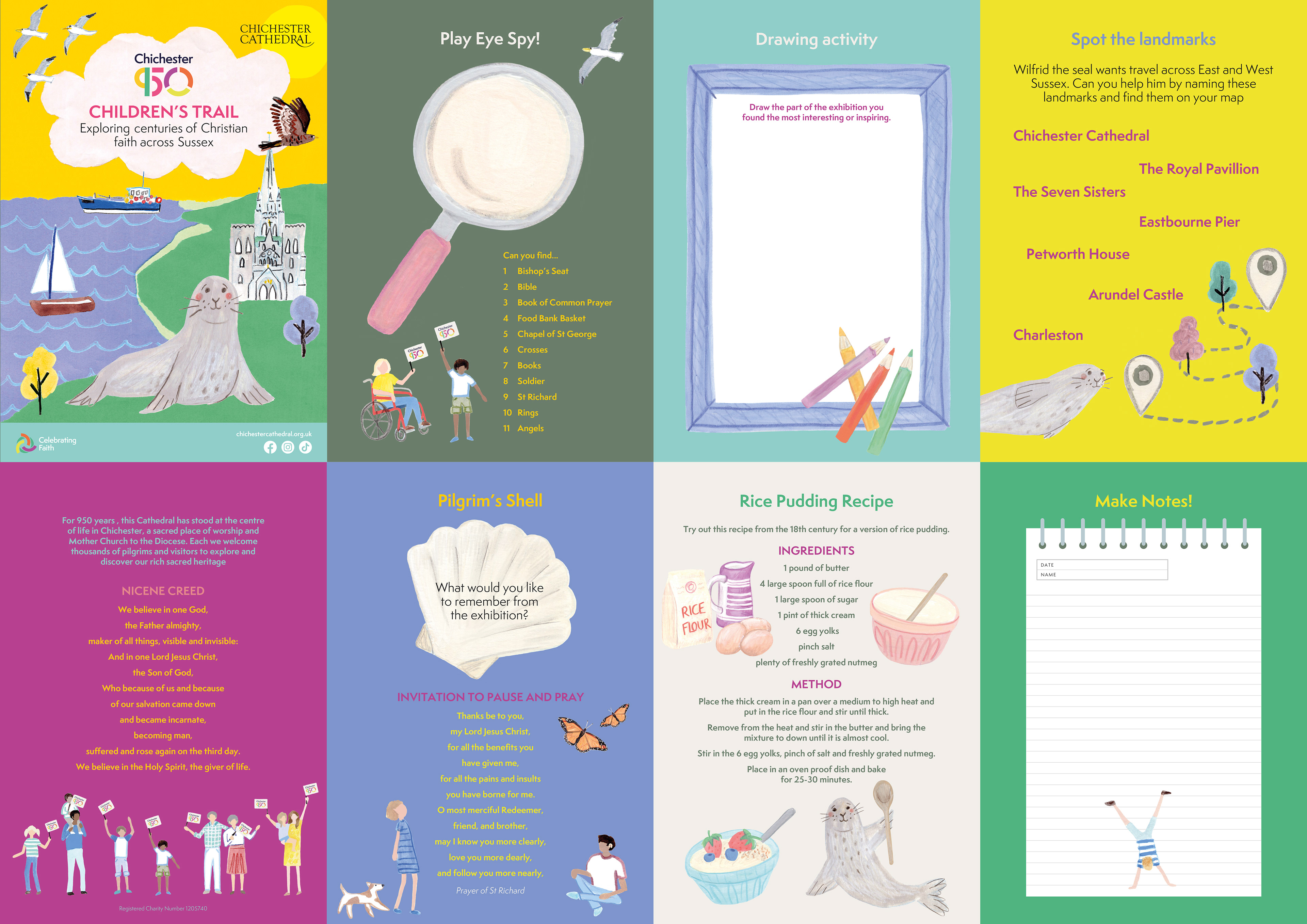Meet Wilfrid the seal. Featured in an illustrated A2 adventure trail that folds down to an A5 size. In celebration of #chichester950 - the 950th anniversary of the Diocese of Chichester and the Cathedral. Concept, Illustration and Design.